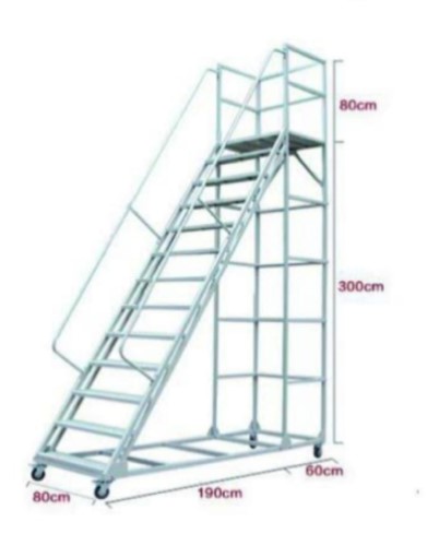 Checked sheet is fixed on top for more grip while climbing.hand rail is fixed both sides for extra support.Whole ladder is fixed on M/S base made of U Channel.2nos swivel wheels and 2nos fixed wheels are provided for easy movement of the ladder.