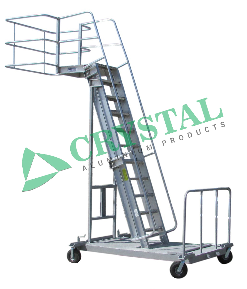 Crystal Aluminium Products - Aluminium Tanker Ladders is adjustable by means of hand winch, the side support section and a double-sided handrail making it easy to work at different heights. All our tanker ladders are mobilewith wheels for easy movement.